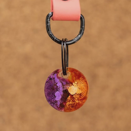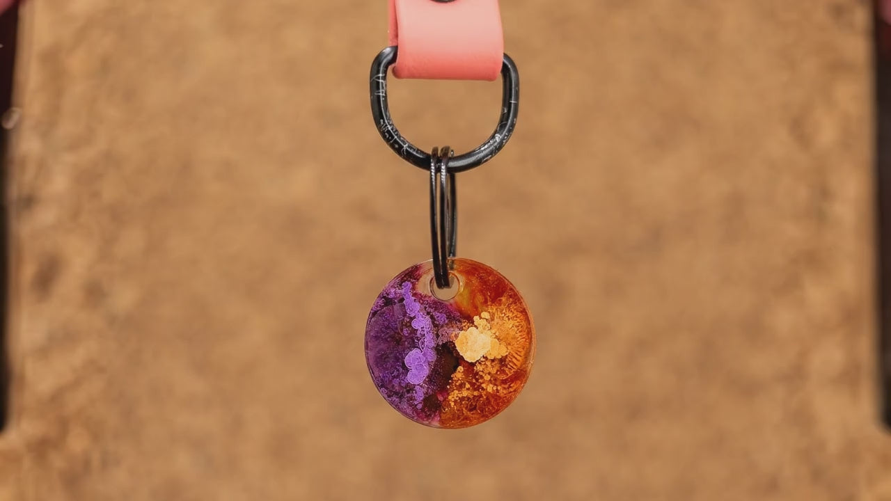 De Jancer hondenpenning. Diep-paars met oranje, echt een hele toffe combinatie! Voor honden die niet bang zijn om op te vallen! ;-)